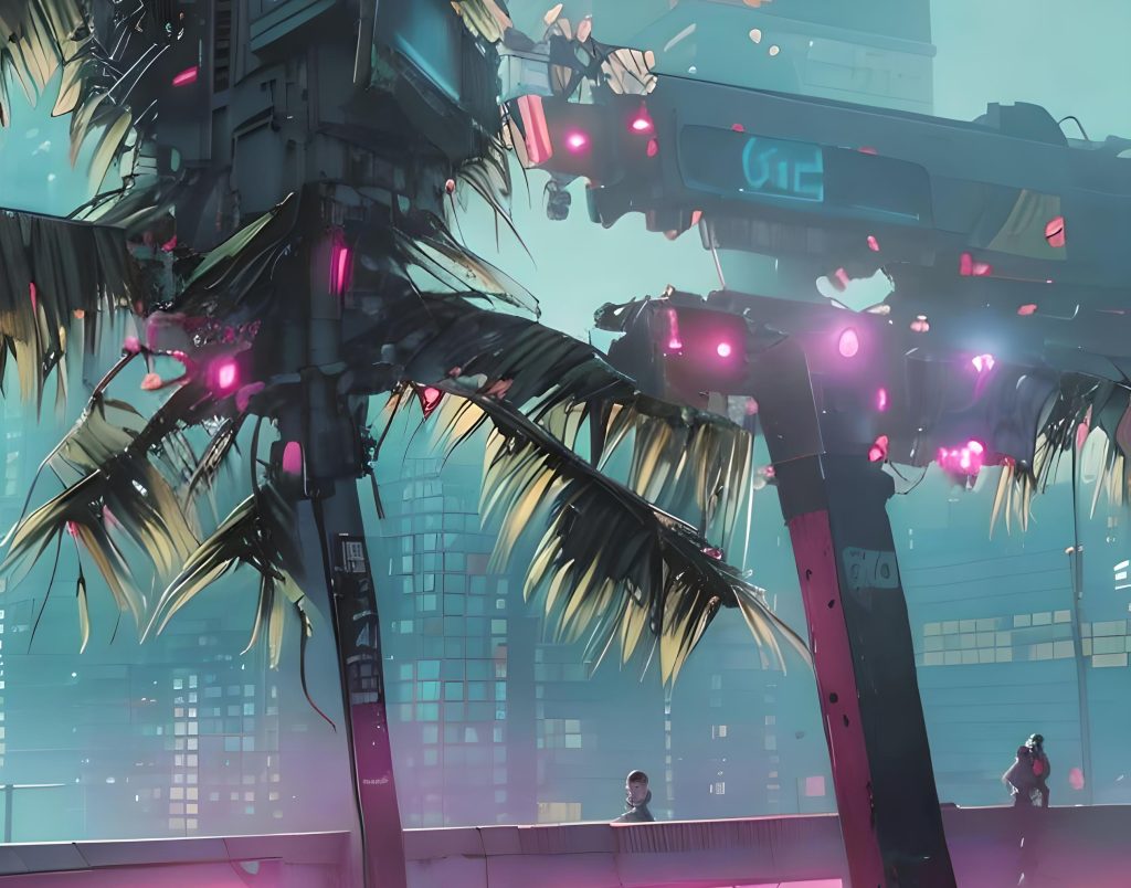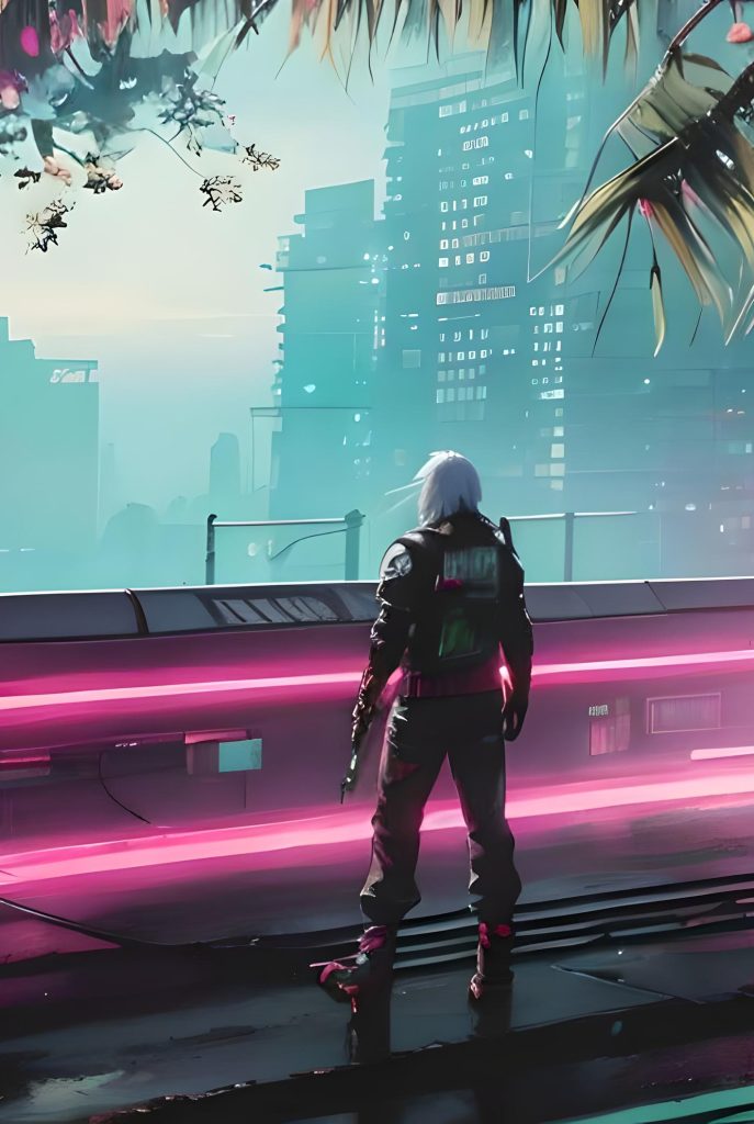 May 13, 2025May 13, 2025tropical-cyberpunkPeopleMan looking at the city from the side of a cyberpunk palm tree Man looking at the city from the side of a cyberpunk palm tree on the viaduct. Open sea link Related workCouple in tropical cyberpunk cityYoung couple in cyberpunk cityBright morning light in cyberpunk city