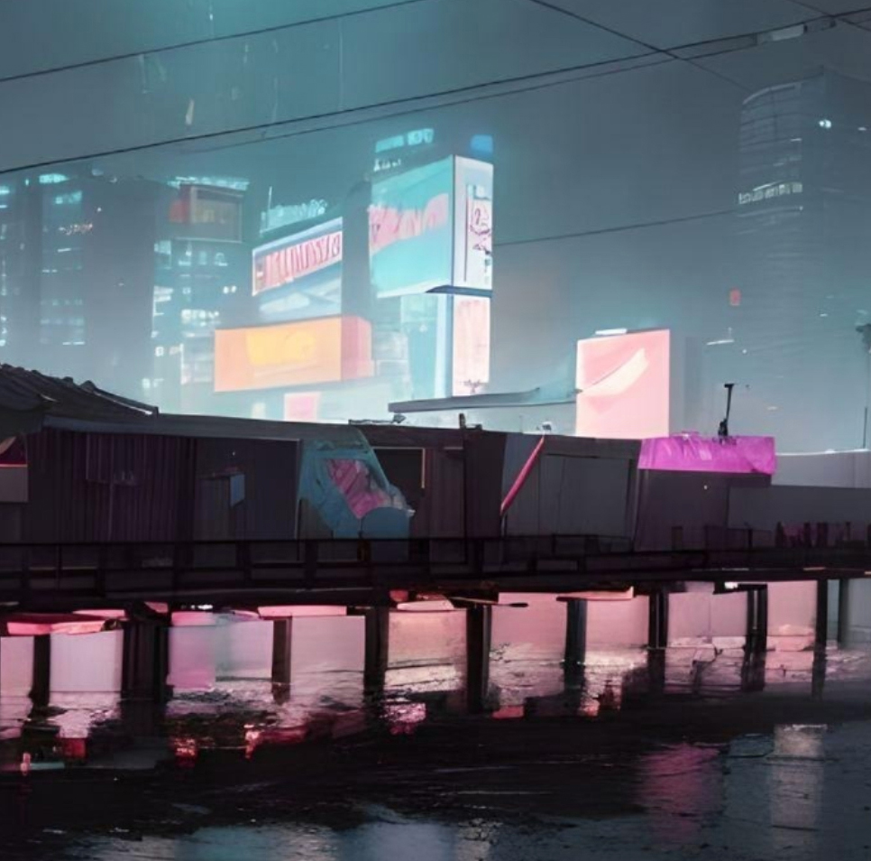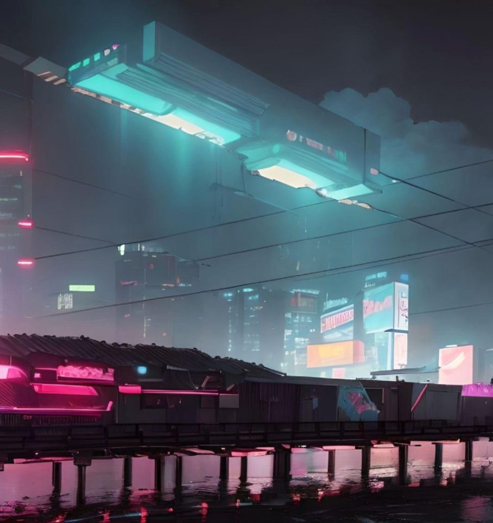 March 17, 2026March 18, 2026tropical-cyberpunkCityLights illuminating the pier in Cyberpunk City Lights illuminating the docks of Cyberpunk City Open sea link Related workMachina NostalgiaBuildings and cyberpunk devices emerging from the cloudsHuge building in cyberpunk city
