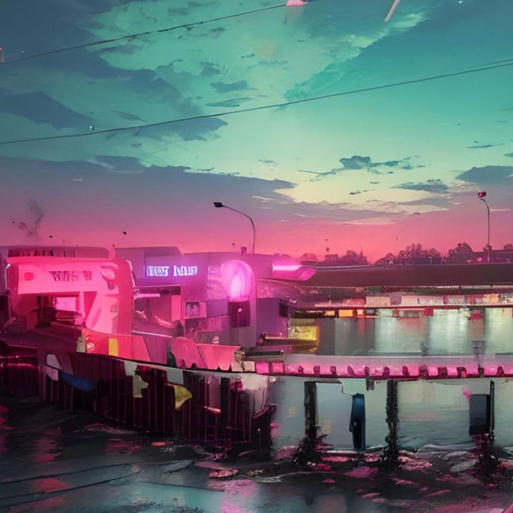 March 18, 2026March 18, 2026tropical-cyberpunkCityPink Twilight at the End of the World A harbor facility at dusk, reminiscent of a cyberpunk world. Open sea link Related workLights illuminating the pier in Cyberpunk CityCyber TwilightSkyscrapers