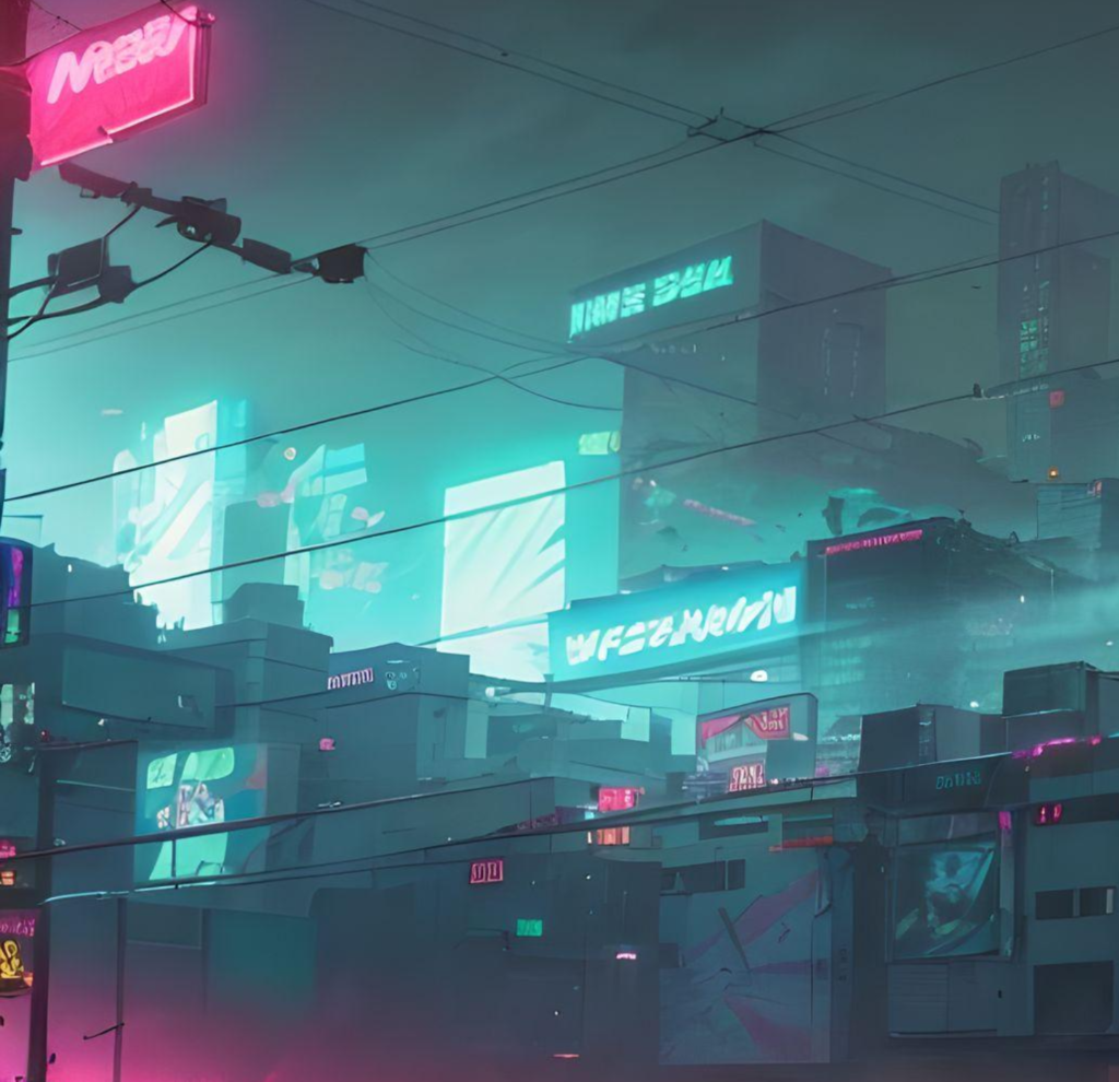 The gigantic holograms dancing across the walls of the skyscrapers continue to emit an empty light, as if to flaunt their former prosperity. This is a place where cutting-edge technology coexists with raw solitude.